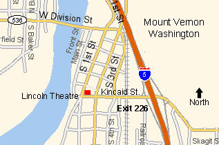 There is a bike rack right outside the Lincoln on First Street. Walking here is also a wonderful idea! You can also take the bus or train to Mount Vernon via Skagti Station and walk a few short blocks downtown to the Lincoln, restaurants and shopping.